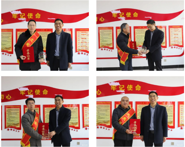 崔君院长代表院党组及全体干警,向四位退休同志致以热烈的祝贺与美好的祝福。他指出,荣退是职业生涯的圆满收官,更是人生新篇章的精彩启程。希望四位退休同志退休后能调整身心、享受生活,多陪伴家人,保持乐观豁达的心态,永葆党员干部的政治底色与法院人的精神品格。随后,为四位荣退老同志赠送了纪念品和荣誉证书,并与大家一起合影留念。
