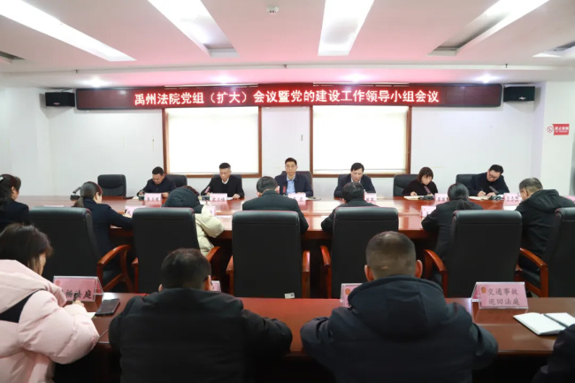 3月9日,禹州市法院党组召开党组(扩大)会议暨党的建设工作领导小组会议,深入学习贯彻习近平总书记关于树立和践行正确政绩观学习教育的重要讲话和重要指示精神,传达学习中央、省委、市委部署要求,部署启动学习教育工作。党组书记、院长崔君主持会议并讲话。