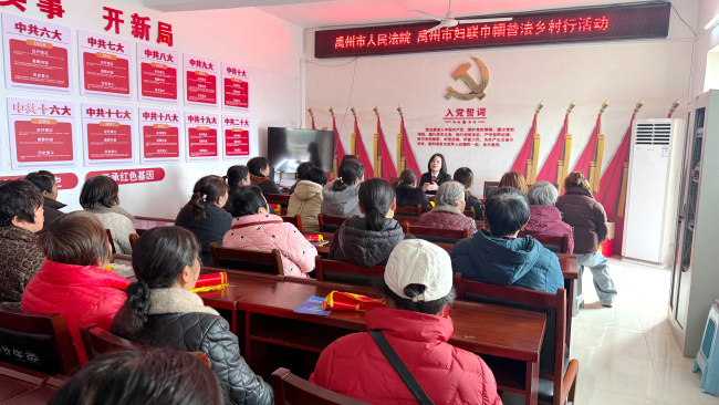 “婚姻期间遭受家暴,如何申请人身安全保护令?”“配偶擅自将夫妻共同财产赠与第三者,该赠与行为是否有效?”“女职工生产期间,公司能否解除劳动合同?”……在浅井镇麻地川村,禹州法院法官助理刘佳琪围绕《妇女权益保障法》《反家庭暴力法》《民法典》等法律法规,结合真实案例,用通俗易懂的语言讲解婚姻财产分配、家暴维权、土地权益保障等热点问题,并现场进行互动,告知大家如何预防和应对家庭暴力、如何维护自身财产权益、如何处理婚姻家庭纠纷等问题,引导广大妇女树立正确的法治观念,增强自我保护意识。